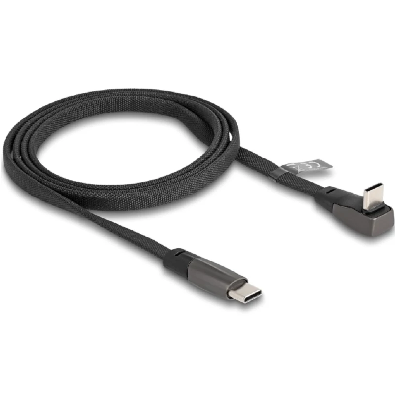 Delock USB 2.0 Laposkábel USB Type-C apa - USB Type-C apa USB Type-C apa hajlított PD 3.0 60 W 1 m fekete