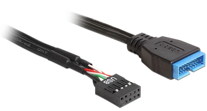 Ezzel a Delock USB pin fejes kábellel lehetősége nyílik, hogy különféle USB 3.0-ás eszközöket csatlakoztasson az alaplapja USB 2.0-ás pin fején keresztül.