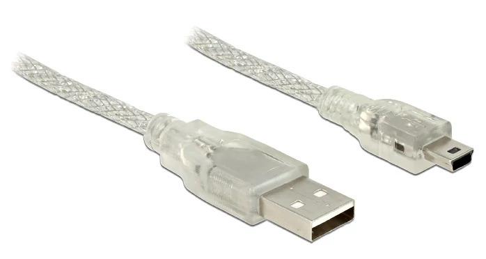 Delock USB 2.0-s kábel A-típusú csatlakozódugóval > USB 2.0 Mini-B csatlakozódugóval, 0,5 m áttetsző