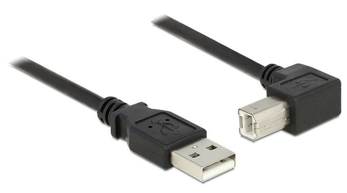 Delock USB 2.0-s kábel A-típusú dugó > USB 2.0 B-típusú dugó derékszögű 1,5 m fekete