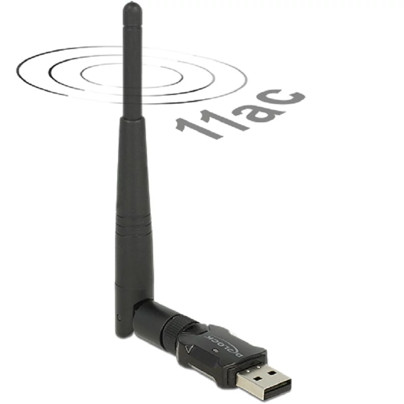 Delock USB 2.0-s, kétsávos WLAN ac/a/b/g/n Nano Stick, 433 Mbps, külső antennával