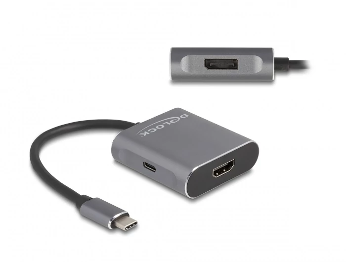 Delock USB Type-C elosztó (DP Alt Mode) - 1 x HDMI + 1 x DisplayPort MST USB Type-C PD-vel
