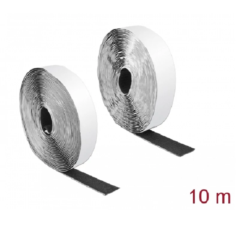 Delock Velcro öntapadó tépőzáras szalag-szett, H 10 m és Sz 25 mm fekete