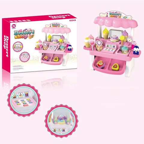 A gyerekek szeretnek olyan játékokat játszani, amelyben eljátszhatják a vevő és az eladó szerepeit, és erre az a cuki desszertes pult remek választás. A készlet egy varázslatos cukrász pultot tartalmaz, ami a rózsaszín színével igazán csajos megjelenést kölcsönös neki, amit felett egy cuki napernyő van kifeszítve. A játék nagyszerűségét a széles választék adja, ami a temérdek színes fagylaltból, nyalókából és mutatós süteményekből áll. A gyerekek ennek a készletnek köszönhetően remekül kipróbálhatják a vásárlás és eladás folyamatát.