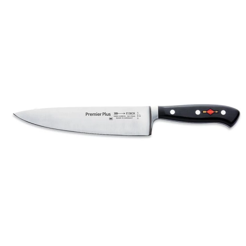 F.Dick Premier Plus termékcsalád kiemelkedő minőséget garantálnak. A klasszikus vonalakat megőrizve mégis egy teljesen új élményt nyújt felhasználójának. Méretarányos pengék, markolatok jellemzik és nem utolsó sorban biztonsági, higiéniai követelményeknek megfelel. Dick Premier plus kések pengéi legmoderneb gyártástechnológiával készülnek, melyhez króm-molibdén-vanádium ötvözetű rozsdamentes acélt használva hosszantartó élességet biztosít. Markolatok prémium minőségű ellenálló műanyagból készül, amit integrált csapokkal rögzítenek az acélhoz. Úgy alakították ki, hogy a markolat tökéletesen illeszkedjen a kézbe és a finom gömbölyítéseknek köszönhetően nem sérti, vágja a kezet akár egésznapos használat során, tökéletes kiegyensúlyozottsága pedig a fáradás mentes használatot teszi elérhetővé.