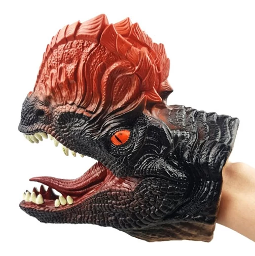 A Dilophosaurus az egyik legkorábbi, és egyben az egyik legkevésbé ismert a jura időszaki theropodák közül, de mivel feltűnt a Jurassic park filmben, így természetesen ennek a fajnak is hatalmas rajongótábora lett, és a kifeszíthető bőr gallérjának köszönhetően elég könnyű felismerni is. Az elképesztő részletgazdagsággal megalkotott báb színei és textúrája is nagyon vagány megjelenést biztosít, ráadásul a kezünkkel belebújva a félelmetes állkapcsot is mozgásra bírhatjuk, ami garantáltan elnyeri a kis srácok tetszését.