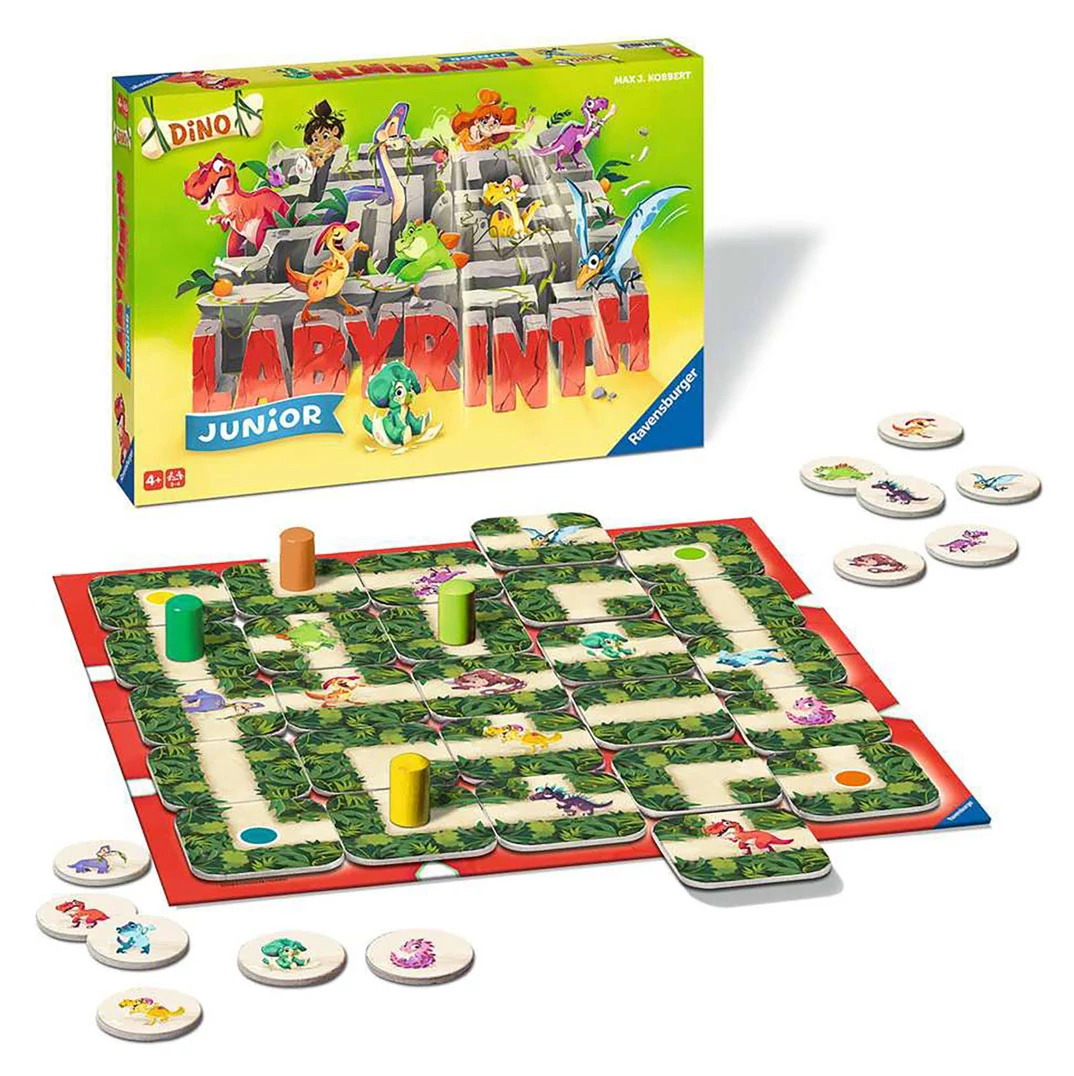 A Ravensburger Dinó labirintus egy szórakoztató és gyorsasági társasjáték, amely a gyors reakciókra és a megfigyelési készségekre épül. A játék során a játékosoknak a kártyákon látható alakzatot kell kirakniuk, figyelve a megfelelő szín-összetételt. Amint valakinek sikerül elsőként megfelelően kiraknia az alakzatot, lenyomhatja a csengőt.