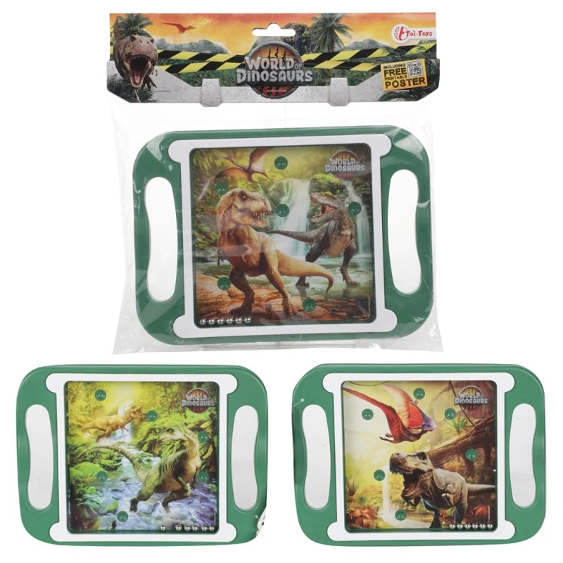 Ez a dinoszauruszos ügyességi játék kiváló választás, ha szeretnéd, hogy a gyerkőcöd szórakozás közben is fejlessze a kézügyességét és koncentrációját. A feladat egyszerű: a fémgolyókat a megfelelő lyukakba kell irányítani a tábla mozgatásával. A játék különféle dinós háttérképekkel érhető el, így minden változat egy izgalmas kaland a dínók világába! Kompakt mérete miatt bárhová magatokkal vihetitek – ideális utazáshoz is.