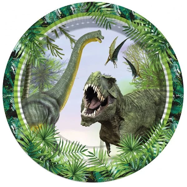 Dínós papír tányér 23cm 8db
