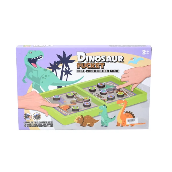 A Sling Puck ügyességi játék egyre népszerűbb, amit leginkább az egyszerű és pörgős játékmenetének köszönhet, ráadásul ezt a változatot mókás dinoszauruszok varázsolják egyedivé, így biztos, hogy a gyerekek kedvence lesz. A keretes játéktábla két részre van osztva, középen egy kis kapuval kialakított elválasztóval. Mindkét játékos azonos számú koronggal kezdi a játékot, amit a saját játékterén kifeszített gumival kell a kis kapunk keresztül az ellenfél oldalára lőni. A játékot az nyeri, akinek a térfelén előbb fogy el az összes korong, beleértve az ellenfél által már átlőtt darabokat is. A Sling Puck egy remek partijáték ami fejleszti a szem-kéz koordinációt és az ügyességet, ráadásul komoly versenyeket is szoktak szervezni.