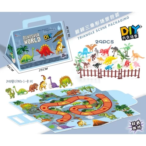 A gyerekek tetszését biztosan elnyeri majd ez a különleges, 29db-ból álló dinoszaurusz játékszett. A háromszög alakú kofferban kicsi dinó figurák találhatóak, melyeket akár társasjáték figurának is használhatunk, hiszen a dobozt szétnyitva egy pályát kapunk. A Magic Toys remek minőségű játékai közül rendkívül széles választékot talál webáruházunk kínálatában kicsik és nagyok számára egyaránt. Válogasson kedvére a több ezer Magic Toys játékból és kiegészítőből!