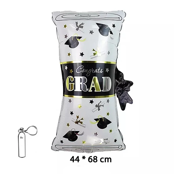 - Ballagási fólia lufi, Congrats GRAD felirattal. Diploma tekercs formájú. 44*68 cm.
