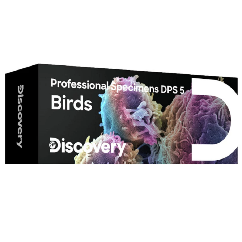 A Discovery Prof DPS 5 mikropreparátum mintakészlet. A „Madarak” készlet professzionális besorolású tárgylemezekből áll. A jövő ornitológusai és zoológusai által nagyra becsült, különféle madárszövetek és madárszervek mintái kiváló oktatási anyagul szolgálnak a középiskolák és egyetemek haladó biológiai kurzusain. A készlet jól jön az otthoni, mikroszkóp alatt végzett amatőr mikroanalízishez.