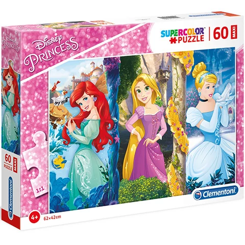 A Disney mesefilmekben majdnem mindig láthatunk egy meseszép hercegnőt, akik minden kislány örömmel lát viszont egy puzzle díszítéseként. Ebben a dobozban hatvan nagyméretű puzzle található, ami aminek a kirakása után Ariel, Aranyhaj és Hamupipőke válik láthatóvá. A kiváló minőségű Clementoni puzzle darabok könnyen összerakhatók és tökéletesen illeszkednek, míg a kompromisszummentes, kimagasló nyomdai eljárásoknak köszönhetően az elkészült kép lélegzetelállítóan éles és teli van élénk színekkel.