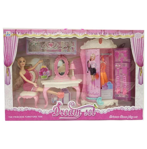 A divatbabák a kislányok kedvenc játékai közé tartozna. Most egy szőke hajú divatbabát hoztunk el gyermekednek, melyhez több kiegészítő is tartozik. A szettben ugyanis egy fésülködő asztalka is található, hozzá való kisszékkel és lámpával. Emellett még tartozik hozzá egy gardrób szekrény, melyben a ruháit tudja tárolni, valamint kiegészítőit, melyeket szintén tartalmaz a szett. Ezeken kívül még gyermeked számára is tartalmaz egy tiarát, fülbevalót és egy szép hajtűt, melyen egy pillangó látható. A szett kiváló választás lehet, szerezd be gyermekednek és lepd meg őt.