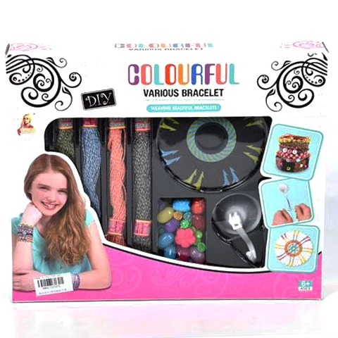 DIY Csináld magad karkötő készítő játékszett színes fonalakkal és gyöngyökkel