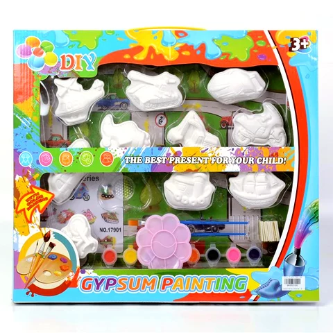 A gipszformák kifestése remek szórakozás lehet a gyermekek számára, ám ha nem szeretnétek otthon koszolni a gipsz elkészítésével, ez a szett remek választás lehet, hiszen már kész formákat tartalmaz. A szettben különböző járművek találhatóak meg, melyeket gyermeked tetszés szerint színezhet meg a szettben lévő élénk színeket tartalmazó festékkel, melyhez még két különböző méretű ecset is tartozik. Kiváló minőségének köszönhetően sokáig lehet majd használatban, valamint kifestés után remek társ lehet a játékok során is.