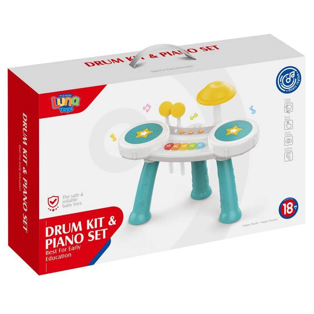 Fedezd fel a zenei kreativitást ezzel a 2 az 1-ben játékhangszerrel, amely a ritmus és a melodikus dallamok szerelmeseinek lett tervezve. A kék színű, kiváló minőségű hangszer mind dobként, mind zongoraként funkcionál, lehetővé téve a gyerekek számára, hogy változatos módon fejezzék ki magukat zeneileg. A dobszett tökéletes választás a ritmus szerelmeseinek. Több különböző méretű és hangszínű dob áll rendelkezésre, amelyek mindegyike más-más hangot ad ki, amikor megütik őket.