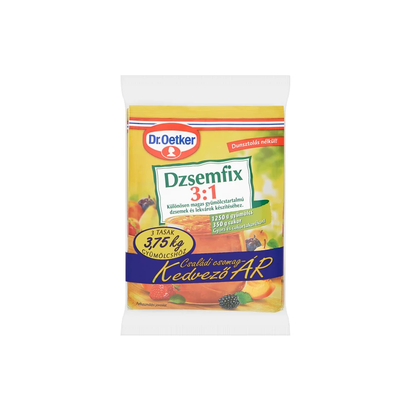 A Dr. Oetker Dzsemfix 3:1 különösen cukortakarékos, melynél a gyümölcs mennyisége kb. háromszorosa a cukorénak: 1250 g gyümölcs mellé csupán 350 g cukor szükséges. Egyedülálló tulajdonsága, hogy édesítőszerek, illetve gyümölcscukor felhasználásával készíthetünk vele alacsonyabb energiatartalmú lekvárokat.