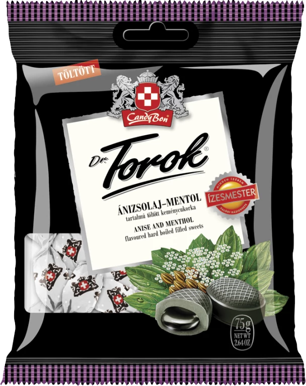 - Cukor, glükózszirup, ánizsolaj (0,072%), színezék: növényi szén, ánizs aroma, mentol (0,08%)