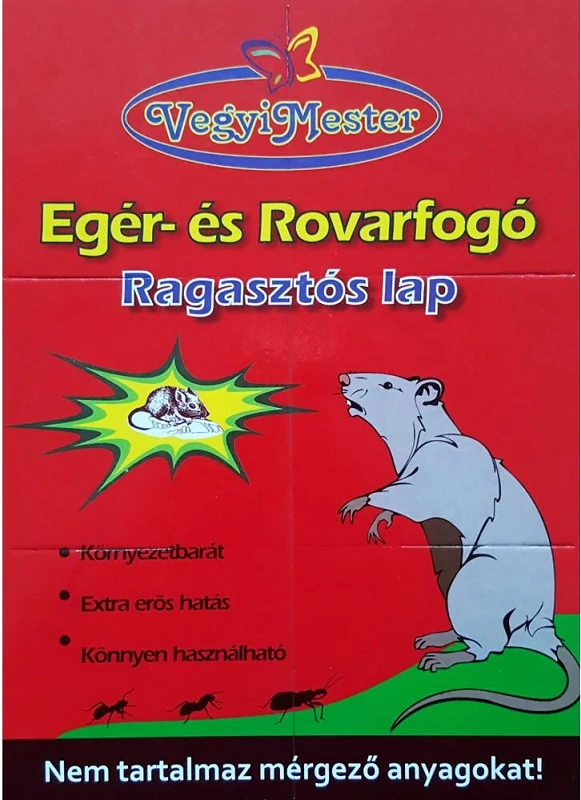 Kész rágcsálófogó lap, amely az egerek és patkányok elhárítására használható, mérgek hozzáadása nélkül.