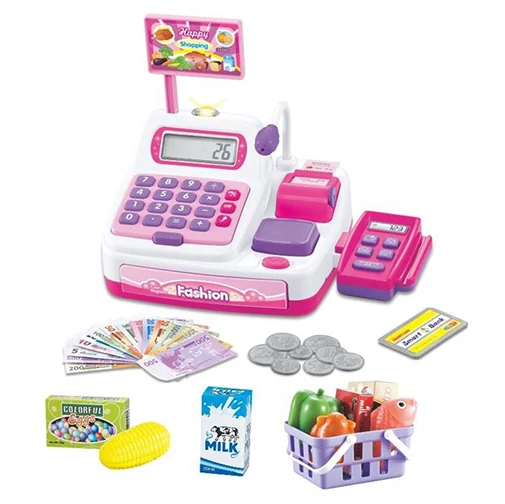 A digitális pénztárgép segítségével könnyedén megnyithatod az üzleted, hiszen a szettben minden olyan hozzávalót megtalálhatsz, amely egy vegyesbolt üzemeltetéséhez szükséges lehet. A digitális kijelzőn a beírt összeg azonnal megjelenik és a pénztárgép összeadja a megvásárolni kívánt termékek értékét. A kasszánál bankkártyával is lehet fizetni, egyszerűen csak húzd le a vásárló kártyáját a terminálon és már ki is fizetődött az összeg. A pénztárgép kiválóan alkalmas a számolás tanulására és a készpénzzel való bánásmód elsajátítására. A pénztárgéphez a különböző kiegészítők mellett játékpénz és bevásárló kosár is tartozik.