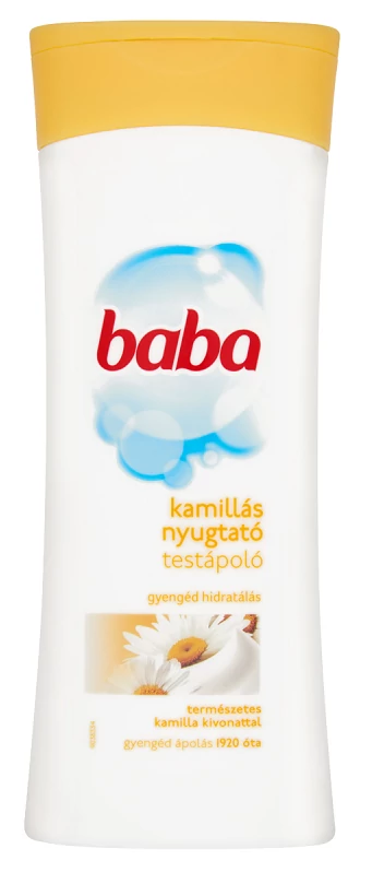 A Baba kamillás nyugtató testápoló gyengéden ápolja a bőrt, érezhetően puhává és simává teszi. Természetes kamilla kivonatot adtunk hozzá, amely generációk óta széles körben ismert nyugtató és bőrpuhító hatásáról. Megnyugtatja a bőrt és az érzékeket. Ez a lágy testápoló könnyen kenhető és teljesen beszívódik, ezáltal kellemes bőrérzetet ad.