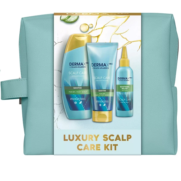 A Head & Shoulders fejbőrápoló ajándékcsomag 270 ml DermaXPro Scalp Care korpásodás elleni sampont, 220 ml hidratáló balzsamot és 145 ml fejbőrápoló hajpakolást tartalmaz, melyek enyhítik a száraz fejbőr tüneteit, segítenek megelőzni a fejbőrszárazság kialakulását, a viszkető fejbőrt és a korpásodást.