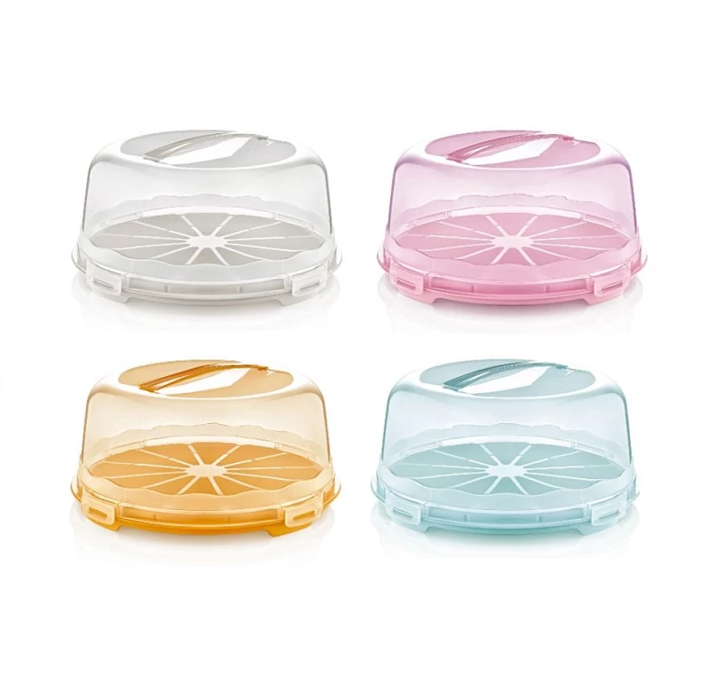 Műanyag fedeles felszolgáló tálca torták és más finomságok szállítására és tárolására alkalmas.