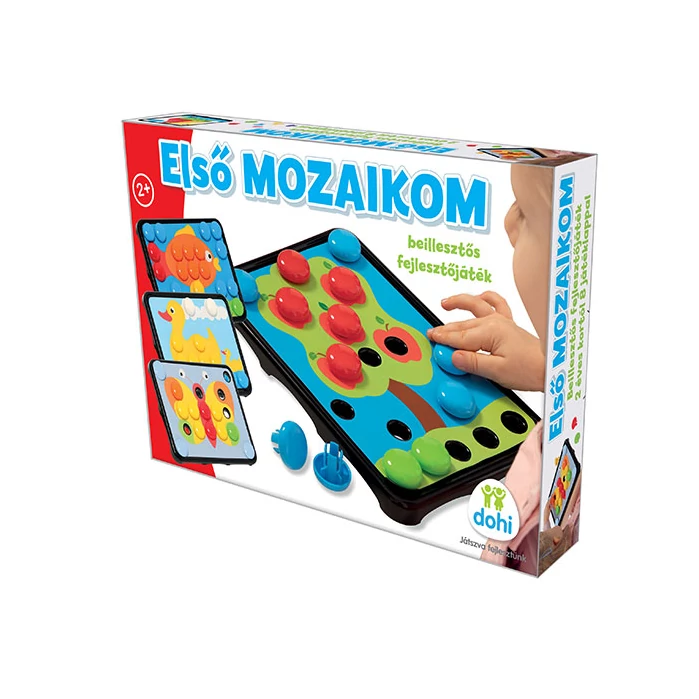 Minden gyereknek van egy egyedi jele az oviban, és ennek a nagyszerű játéknak köszönhetően a kicsik a nyolc legnépszerűbb és leggyakoribb óvodai jelet tölthetik meg színekkel a beilleszthető gombok segítségével. Az Első mozaikom játékcsalád kifejezetten a két éves gyerekek számára lett fejlesztve, ennek megfelelően nem tartalmaz olyan apró elemeket, amelyeket a kicsik lenyelhetnének, ugyanakkor a játékban található gombok elhelyezése a kép megfelelő színű részén fejleszti a finom-motorikus készségeket és a színfelismerést.