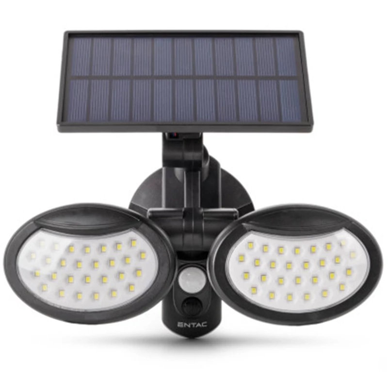 Az "Entac Napelemes Műanyag Fali lámpa 10W SMD 2 fej mozgásérzékelővel" egy kiváló minőségű termék, amely ideális választás lehet otthonod vagy irodád külső világításához. Ez a lámpa napelemes technológiával működik, így nem szükséges hozzá különálló áramforrás. A beépített napelemek napközben energiát gyűjtenek, majd az éjszakai órákban automatikusan bekapcsolnak, hogy megvilágítsák a környezetüket.