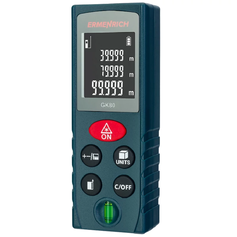Az Ermenrich Reel GK80 lézeres mérő lehetővé teszi a 80 méteren belüli távolságok pontosan mérését, valamint a hogy térfogat és terület meghatározását, ami hasznos eszközzé teszi a javítások és az építőipar terén. A mérőműszer Pitagorasz-tétel funkcióval is rendelkezik, amely elengedhetetlen, ha nehéz körülmények között kell méréseket végeznie. Néhány köztes mérés segítségével a Pitagorasz-tétel funkció kiszámítja a távolságot egy olyan pontig, amelyet nem lehet közvetlenül a lézerrel eltalálni.