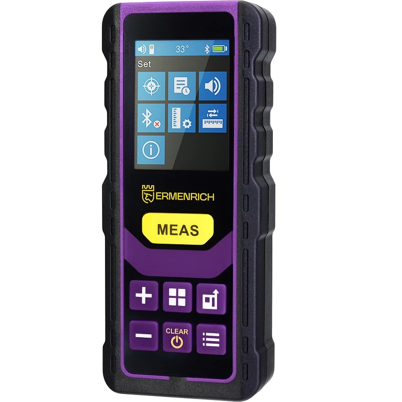 Az Ermenrich Reel PRO GL60 lézeres mérő lineáris és térbeli mérésekhez használható az iparban, az építőiparban és az otthoni javításokban. A kompakt műszerrel mérhet távolságot, hosszúságot, szöget, térfogatot, területet, valamint háromszögeket és négyzeteket. Van Pitagorasz-tétel funkciója is, amely képes két közbenső méréssel közvetve meghatározni két pont távolságát. Az 500–535 nm hullámhosszú zöld lézernek köszönhetően a mérés pontossága ±1,5 mm-en belül van.