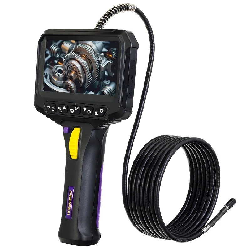Az Ermenrich Seek VE80 ipari endoszkóp mindössze 6,2 mm átmérőjű, 90°-os látószögű forgatható kamerával rendelkező professzionális multifunkcionális eszköz. A furatvizsgáló a javítási és építkezési munkák minőségének, az ingatlanok állapotának általános ellenőrzésére, valamint nedvesség, penész és fagyás forrásának megkeresésére használható. A hajlékony, vékony szondának köszönhetően a felhasználó könnyen megvizsgálhatja a falon belüli nehezen elérhető üregeket és szerelvényeket (villamos vezetékek, csövek, aknák stb.). Kábelhossz: 3 méter. Az endoszkóp a kamera lencséje körül hat erős LED-ből álló háttérvilágítással van felszerelve, amivel teljes sötétségben is használható.