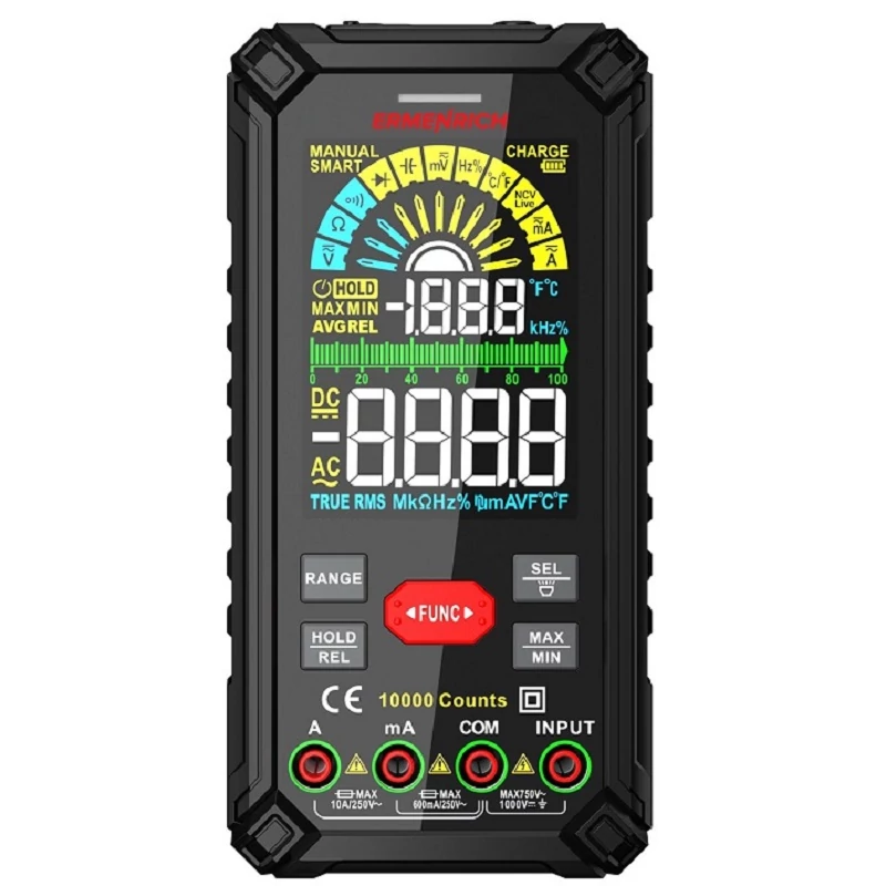 Az Ermenrich Zing TC40 egy zsebméretű multiméter, amely elektromos hálózatok tesztelésére, valamint számos elektromos jel paramétereinek mérésére szolgál. A színes képernyő kontrasztos és nagy számjegyekkel, valamint grafikus skálával rendelkezik. Az eszköz nagy pontosságú méréseket biztosít a True RMS módszer alapján, és újratölthető teleppel működik. A készülék professzionális és otthoni használatra egyaránt alkalmas.
