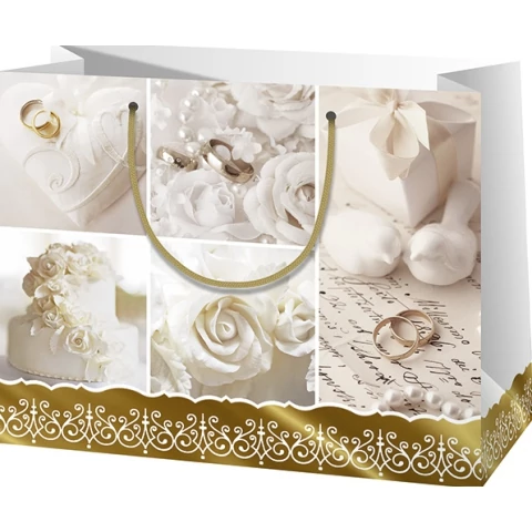 Esküvői mintás közepes méretű ajándéktáska 18x23x10cm-es