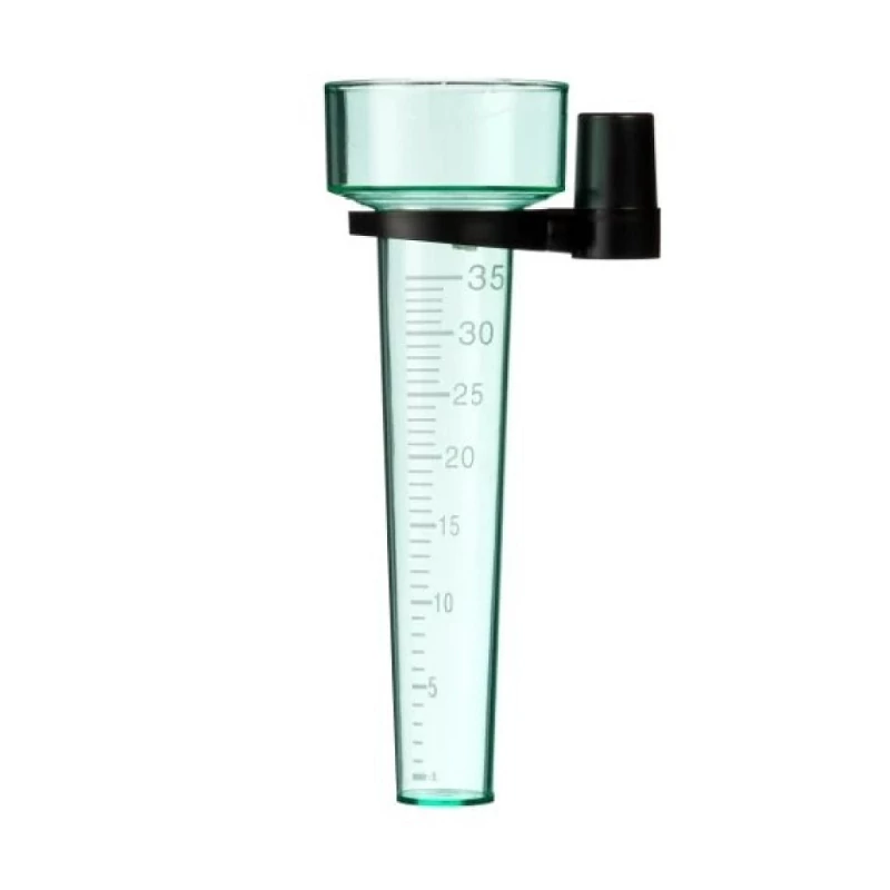Műanyag csapadékmérő, amely támaszhoz, állványhoz vagy egy O 25 mm-es karóhoz rögzíthető (nem a csomag része). Beosztása pontos információt nyújt a csapadék mennyiségéről. Legfeljebb 35 mm mérésére alkalmas (1 mm = 1 liter/m2).
