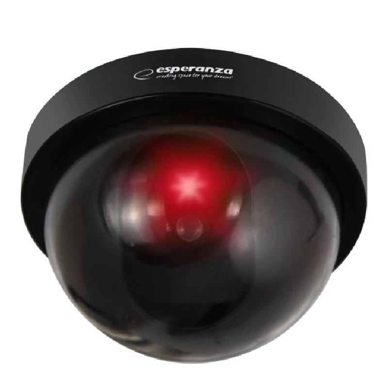 Valódi kamerát utánzó Esperanza GHOST dummy dómkamera. A valósághű megjelenés és a pulzáló piros LED egy valódi megfigyelőrendszer benyomását kelti. Hatékonyan elriasztja a nem kívánt látogatókat otthon és a helyszínen. Kupola kapcsoló LED impulzusfrekvencia: 1,5 másodpercenként Tápellátás: 2 x AA elem (nem tartozék) Méretek: 118 x 118 x 77 [mm]