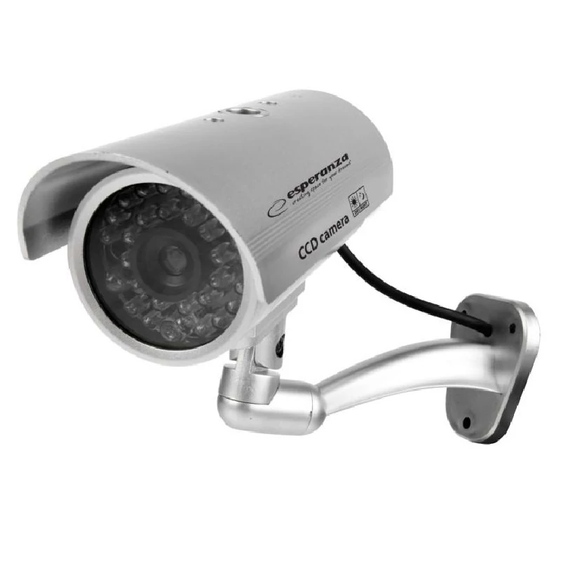 Egy álkamera, amely egy igazi kamera munkáját imitálja. Ennek köszönhetően a megfigyelés illúzióját kapja, ami növeli otthona biztonságát. A kamera precízen készült, így megjelenésében nem tér el "igazi" társaitól. Nem csak állencsével, villogó diódával , hanem mesterséges kábellel is rendelkezik . A készlet tartalmazza a falra szereléshez szükséges csavarokat. Dióda impulzusfrekvencia: 2 másodpercenként Tápellátás: 2 x AA elem ( nem része a csomagnak) Méretek: 300 x 650 x 180 mm Szín: ezüst