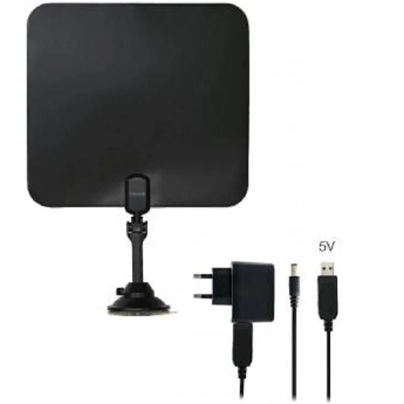 Aktív beltéri antenna, FM/DAB+/DVB-T2 vételhez HD-ben, 41 dBi erősítés, LTE szűrő, hálózati adapter, IEC férfi kábel