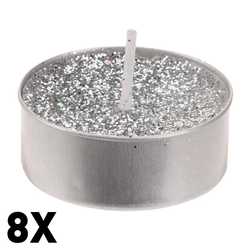 Ezüst csillámos teamécses 8db-os kiszerelésben ACC004130