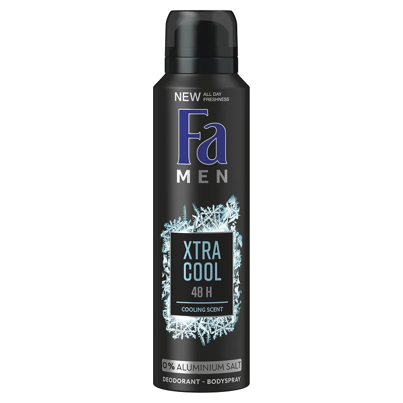 Fa Men Xtra Cool deospray eukaliptusz illattal. Az aktív frissesség komplex küzd a testszagot okozó baktériumok ellen, és hosszantartó védelmet biztosít. Alumínium só nélkül.
