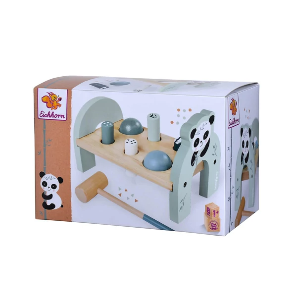Az Eichhorn márka a lehető legjobb minőségben készíti fa termékeit, melyek közül most egy pandás változatot hoztunk el gyermekednek. A játék egy kis fa asztalka, melyen különböző lyukak találhatók, amikben rögzíteni lehet a hozzá tartozó gömböket és rudakat, amiket aztán gyermeked egy fa kalapács segítségével tud majd ki kalapálni az asztalka lapjának másik felére. Ezzel sokat fejlődhet motorikus mozgása és közben remekül szórakozik majd. Szerezd be és keresd kínálatunkban további termékeinket is.