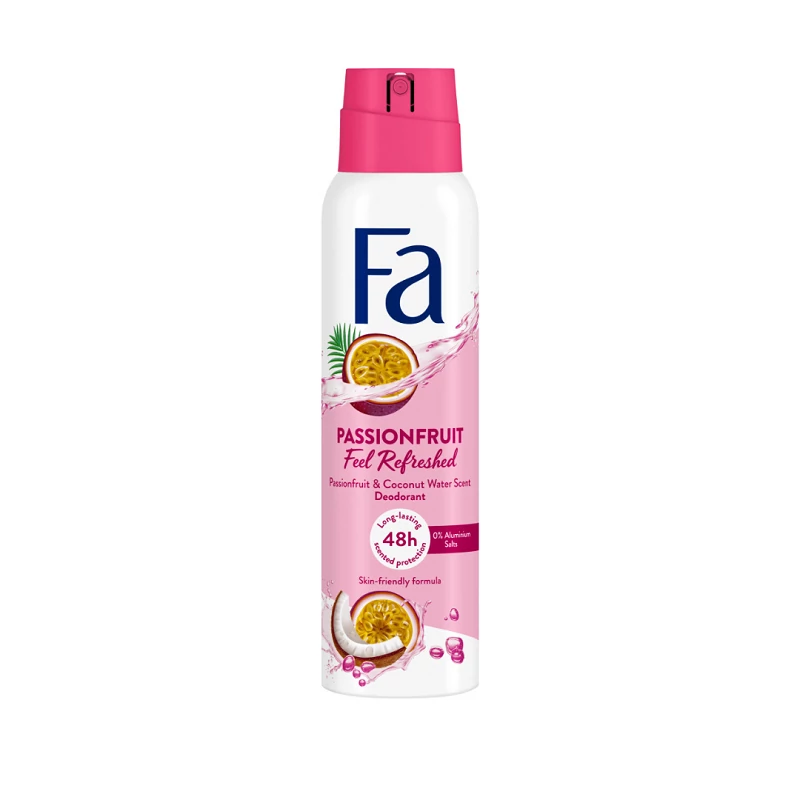 Frissítse fel testét a Fa Passionfruit izzadásgáltó deo sprayvel. A dezodor maracuja és a kókuszvíz illatával kényeztet és hosszan tartó izzadásgátlást biztosít. Nem hagy foltot a ruhán. A bőrbarát formula vegán, állati eredetű összetevőktől és alumíniumsóktól mentes.