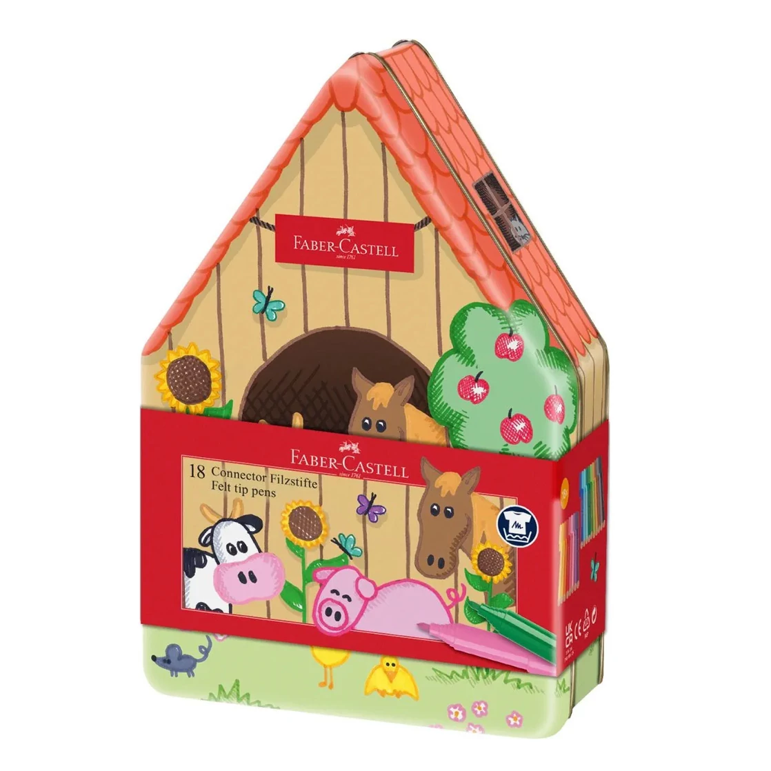 Faber Castell: Connector filctoll készlet 18db-os Farm mintás fém dobozban