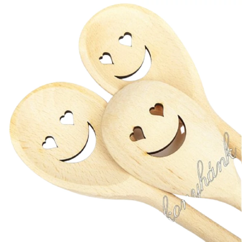 Szív és Mosoly mintás fakanál / keverőkanál