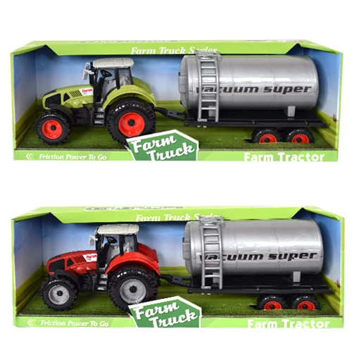 A farmokon a munka egy jelentős részét gyakran traktorok végzik, melyek végeláthatatlan teherbírásukkal rengeteg terhet levesznek a gazdák válláról. AS mai modern gazdálkodás már szinte elképzelhetetlennek tűnik ezek nélkül a remek gépek nélkül. Ez a fantasztikus Farm traktor tökéletes mása a földeket cirkáló igazi traktoroknak. Ezúttal a traktor egy tartályos pótkocsit kapott, mely még teljesebb játékélményt biztosít. A jókora játék méretének köszönhetően kül- és beltéren egyaránt remekül használható hiszen nagy kerekei miatt mindenen átgurul majd.