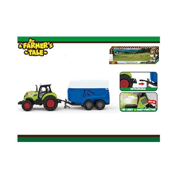 A Farmer's Tale olyan játékokat gyárt, amely nem hiányozhat gyermeked gyűjteményéből, főleg ha imádja a farm játékokat, pontosabban a traktorokat. Már következtethetünk, hogy a szettben egy traktorral találkozhatunk, viszont nem egy akármilyen. A traktor mellett egy lószállító is helyet kapott, amelyet az előbbihez lehet csatolni. A szett két különlegessége az, hogy a traktor lámpái meggyúlnak egy gombnyomásra, míg a lószállító kinyitható, így különböző kis méretű állatokat tehetsz bele.