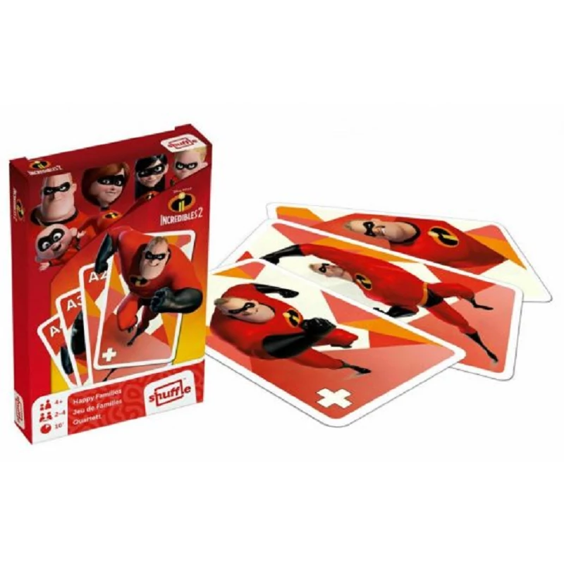 A hihetetlen család Fekete Péter és memóriakártya lehetőséget ad, hogy próbára tedd a memóriádat vagy a szerencsédet. A lapokon Mr. Irdatlan, Nyúlánka és A hihetetlen család többi szereplője köszön vissza rád. Mókás kihívásnak nézhetsz elébe, hogy vajon Te találod e meg a leggyorsabban a párokat a memóriajátékban. A másik játéknál pedig nagy lesz az izgalom és mulatság is, hogy kinél fog maradni a Fekete Péter kártyalap.