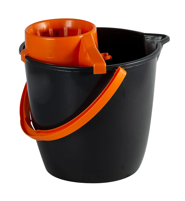12 literes fekete műanyag felmosóvödör csavaróval.